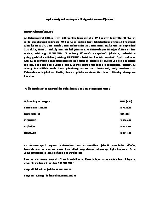 Költségvetési beszámoló 2012. évről