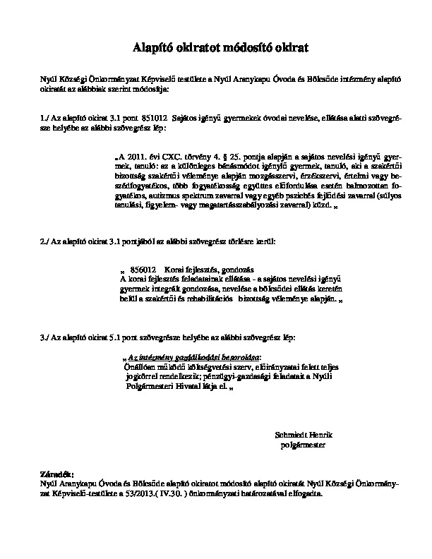 Óvoda Alapító Okirat módosítása