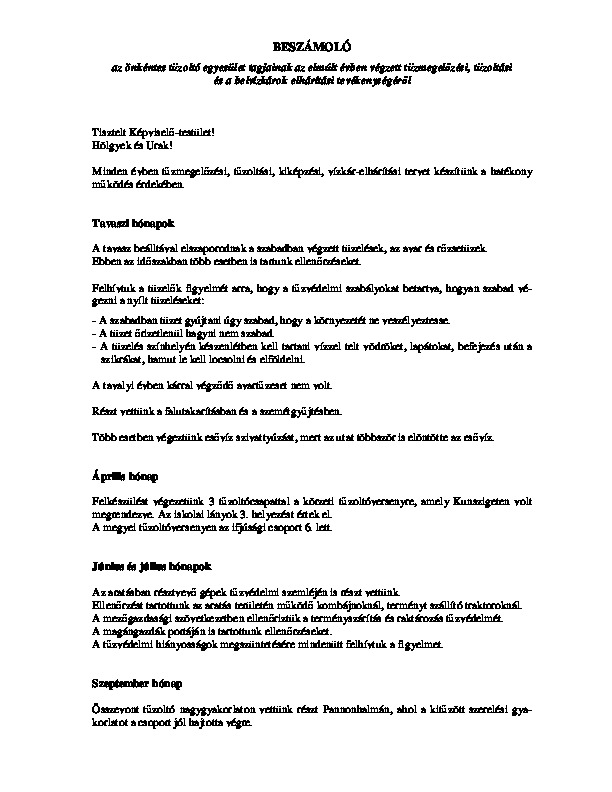 Tűzoltóság beszámolója