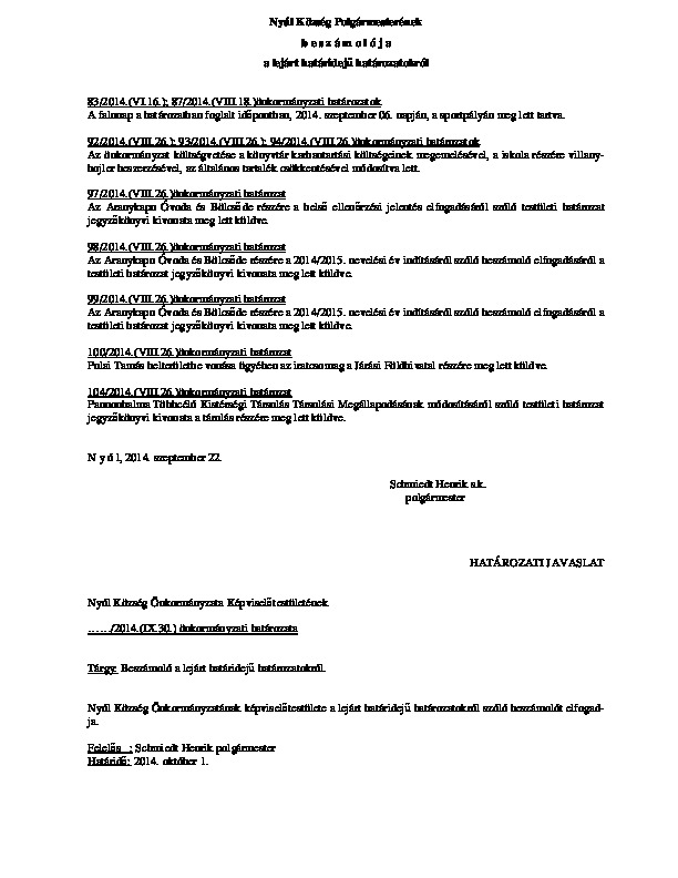 Előterjesztések 2014-09-30