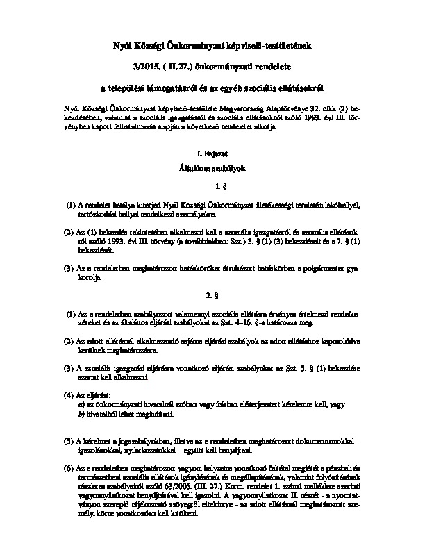 Szociális ellátás - rendelet tervezet