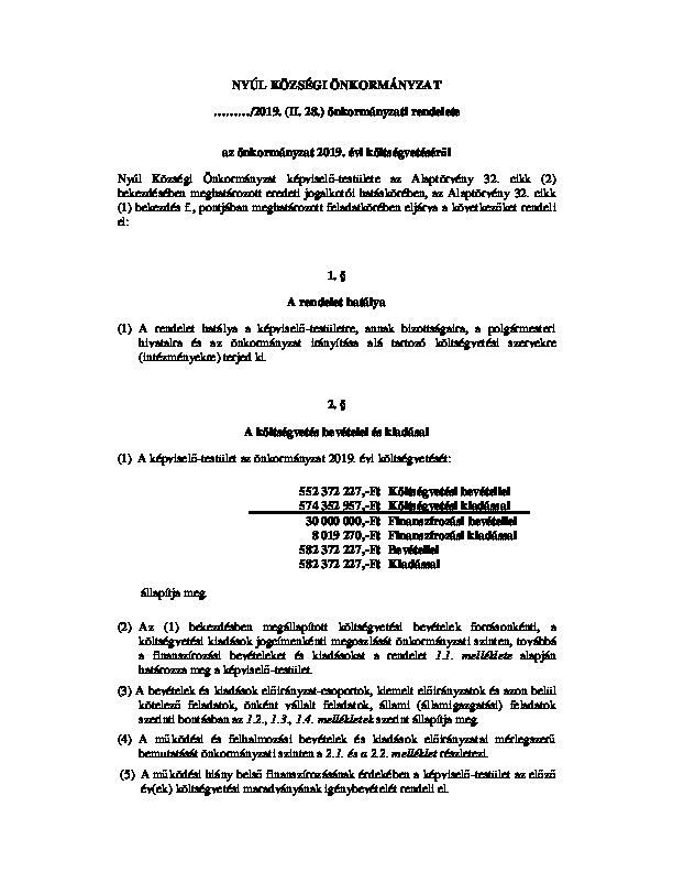 Költségvetési rendelet tervezet 2019