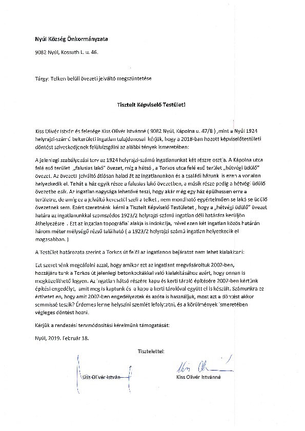 Kiss Olivér - RT módosítás kérelem
