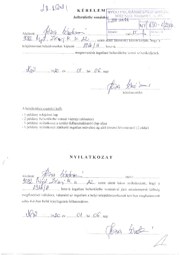 1914/11 hrsz belterületbe vonása - kérelem térképkivonat főép. vélemény határozati jav.