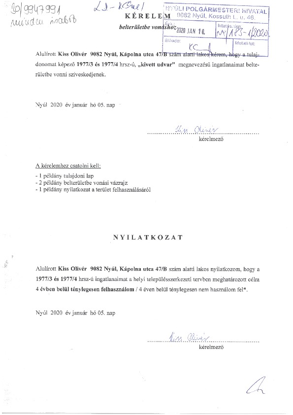 1977/3 és 1977/4 hrsz belterületbe vonása - kérelem térképkivonat főép. vélemény határozati jav.