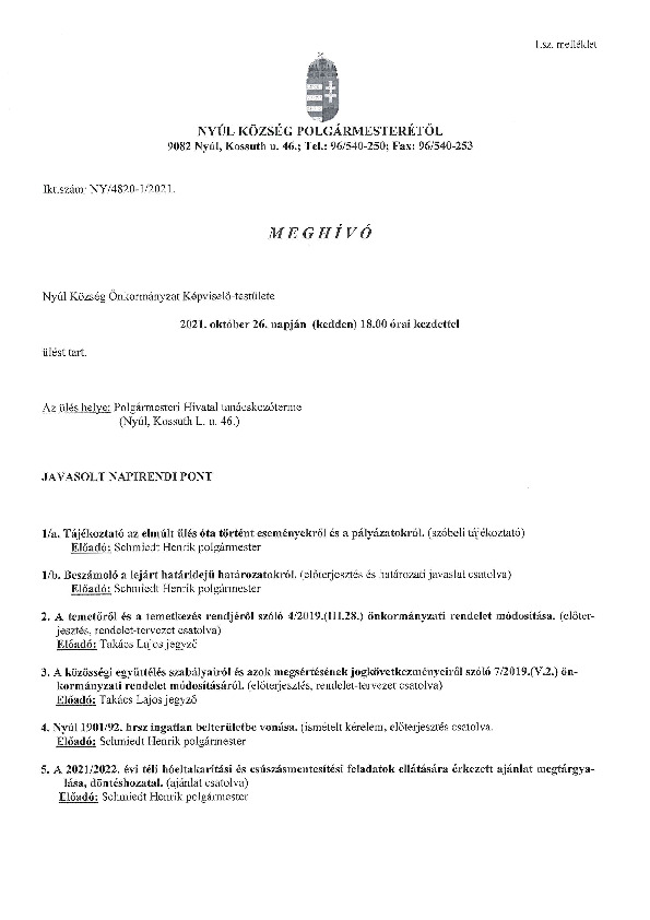 Előterjesztések 2021-10-26