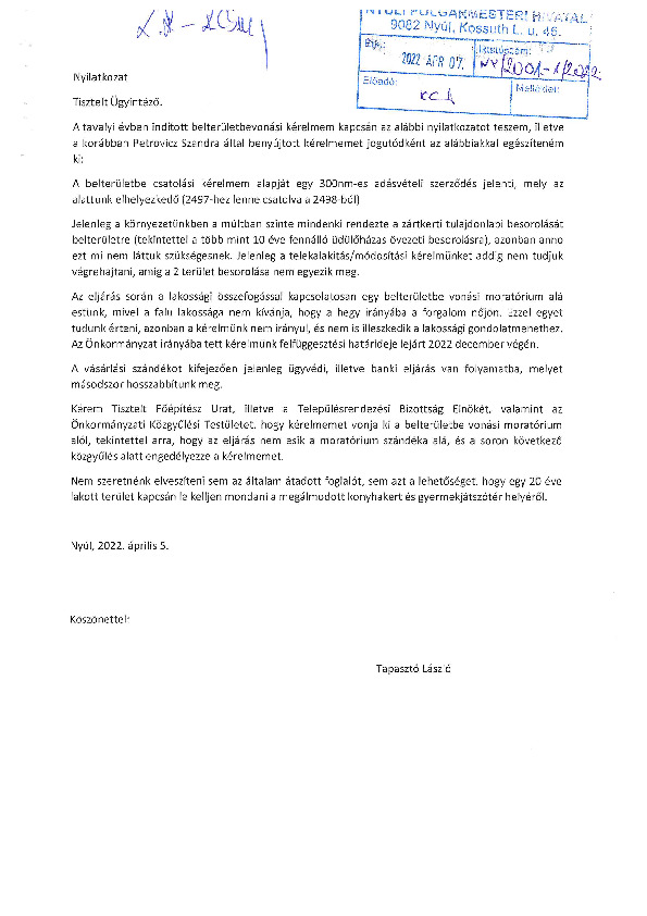 2497 és 2495 hrsz ingatlan belterületbe vonása