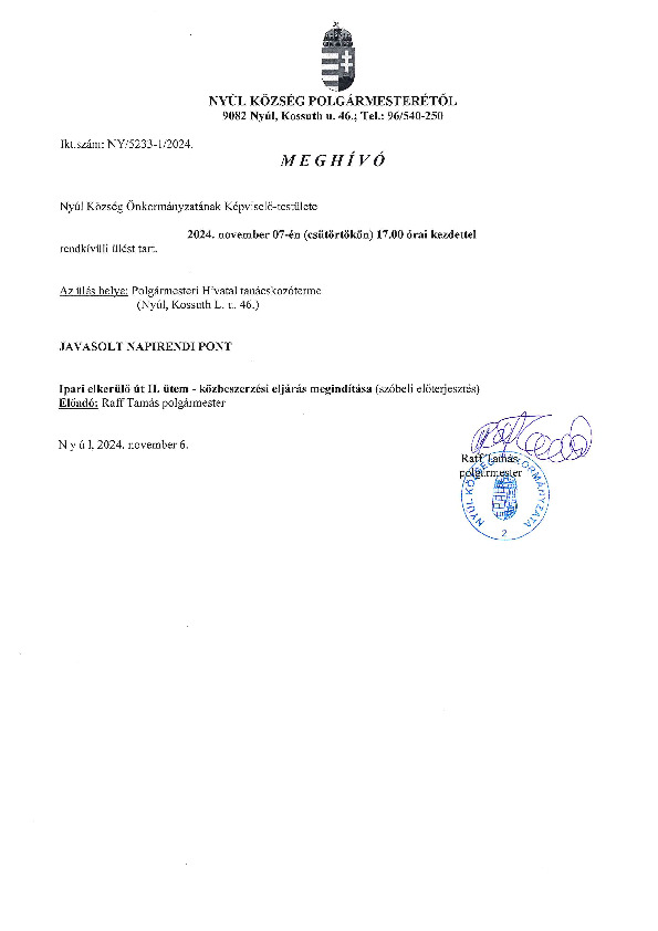 Meghívó rendkívüli testületi ülésre