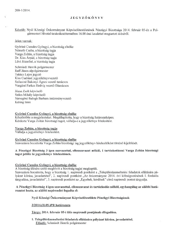 Pénzügyi Bizottság - 2014.02.05 jegyzőkönyv