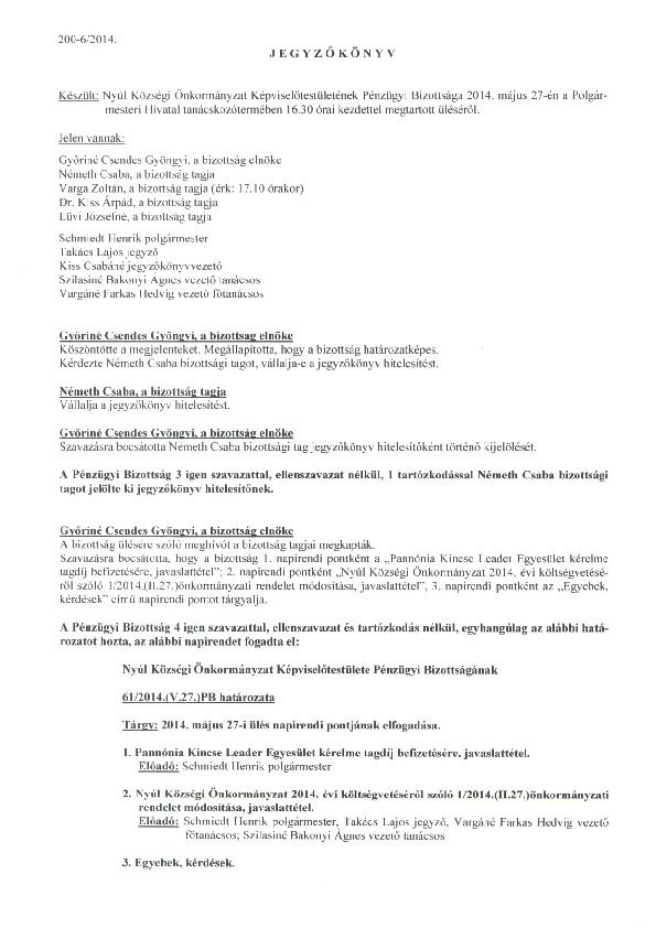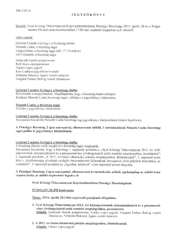 Pénzügyi Bizottság - 2014.05.27 jegyzőkönyv