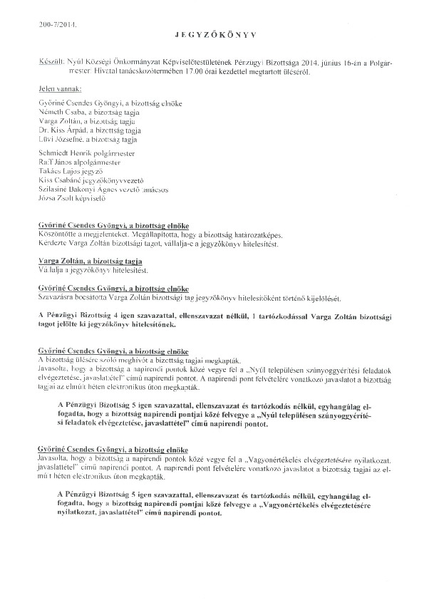 Pénzügyi Bizottság - 2014.06.16 jegyzőkönyv