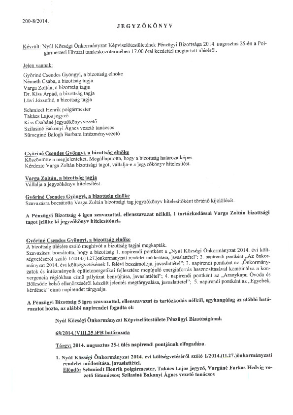 Pénzügyi Bizottság - 2014.08.25 jegyzőkönyv