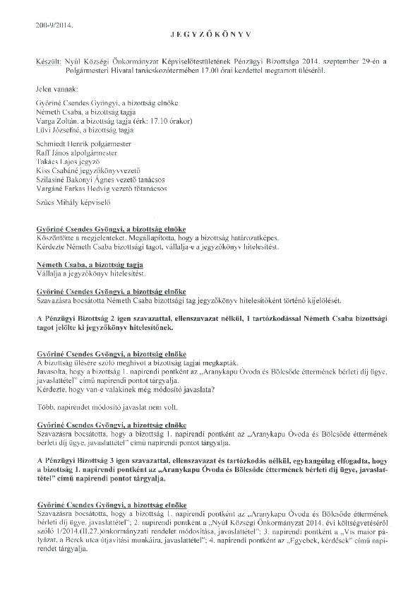 Pénzügyi Bizottság - 2014.09.29 jegyzőkönyv