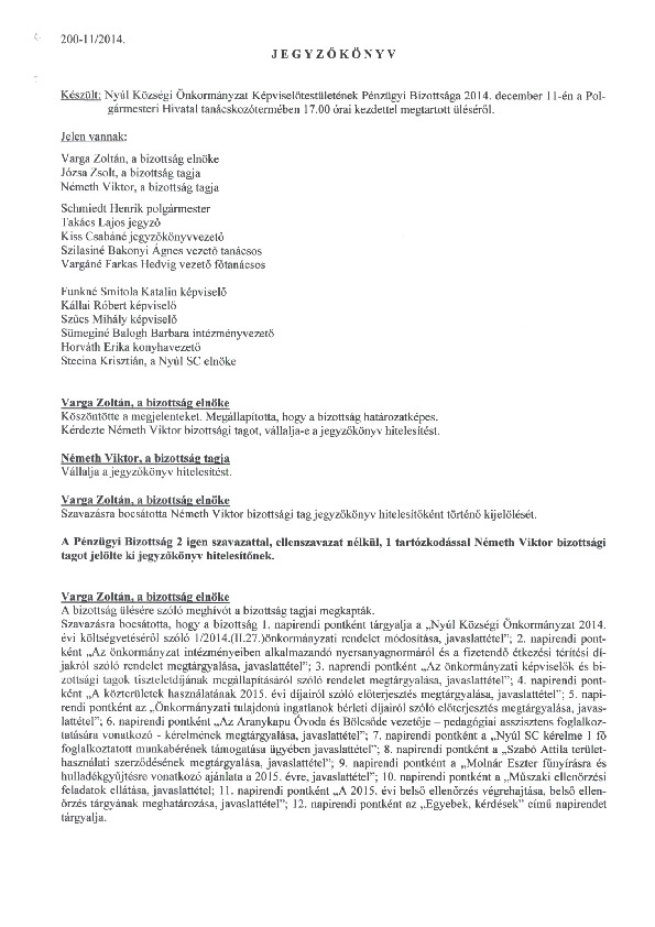 Pénzügyi Bizottság - 2014.12.11 jegyzőkönyv