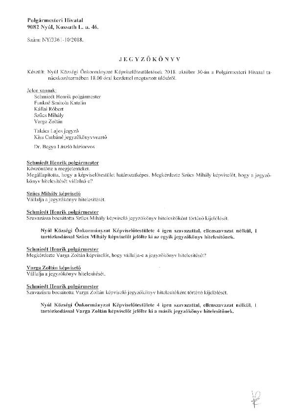 Testületi ülés - 2018.10.30 jegyzőkönyv