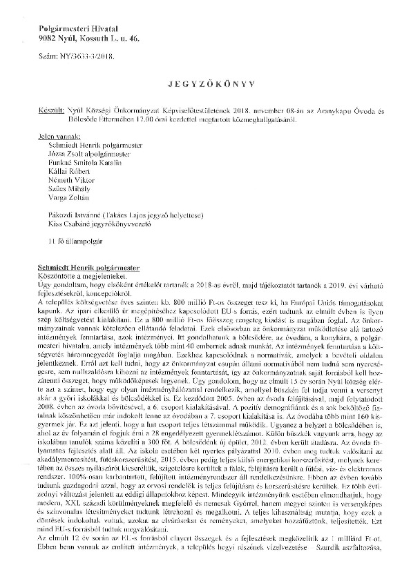 Közmeghallgatás - 2018.11.08 jegyzőköny