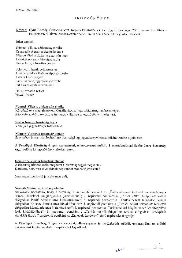 Pénzügyi Bizottság - 2021.08.30 jegyzőkönyv