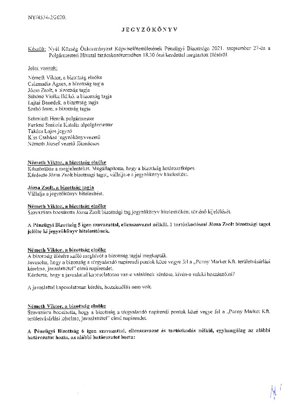 Pénzügyi Bizottság - 2021.09.27 jegyzőkönyv
