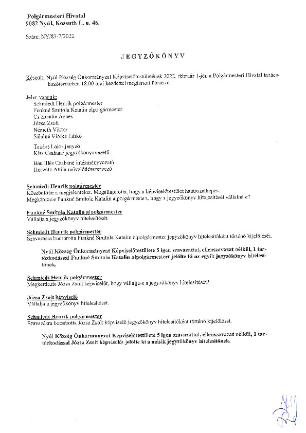 Testületi ülés - 2022.02.01. jegyzőkönyv