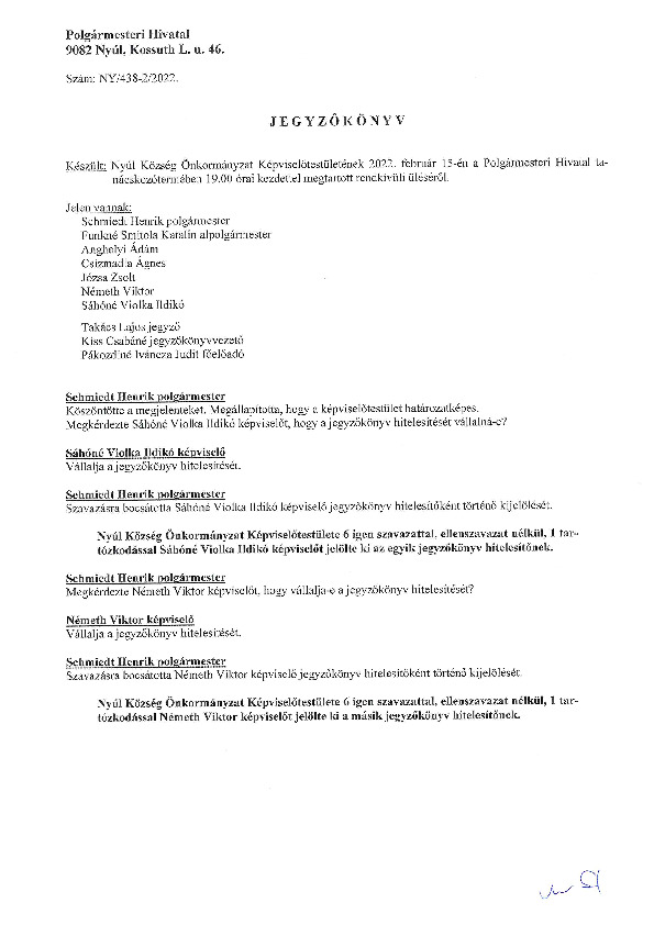 Testületi ülés - 2022.02.15. jegyzőkönyv