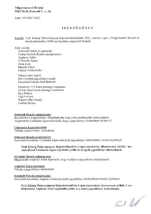 Testületi ülés - 2022.03.01. jegyzőkönyv