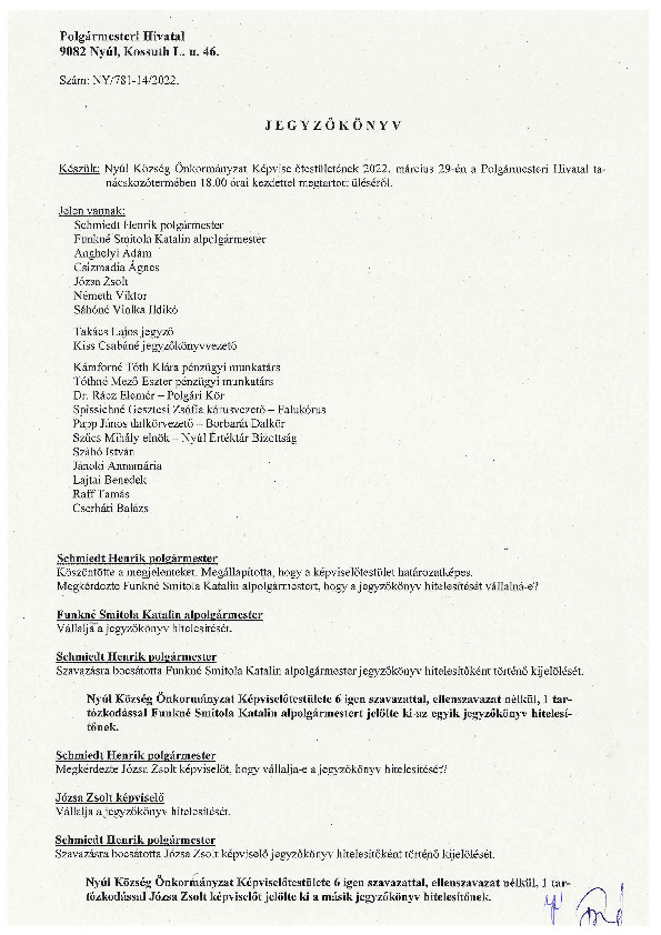Testületi ülés - 2022.03.29. jegyzőkönyv