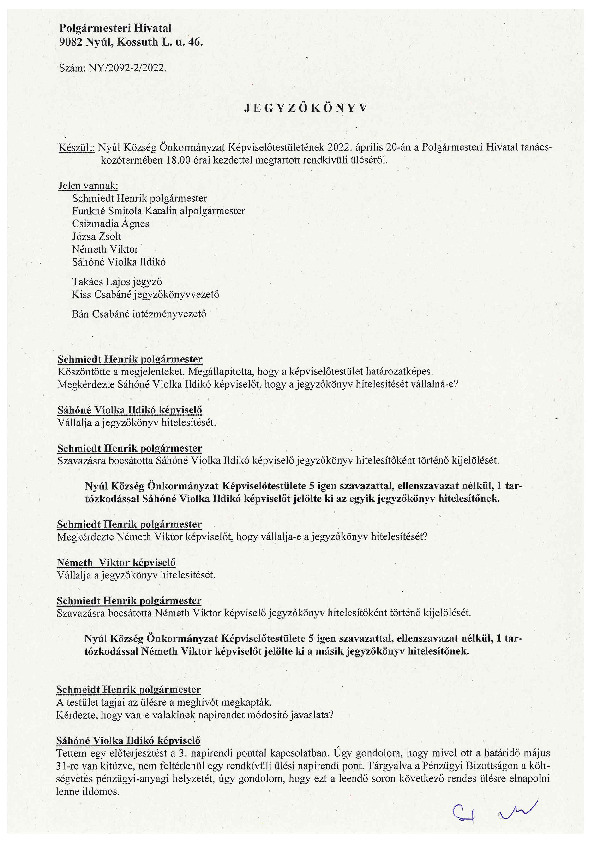 Testületi ülés - 2022.04.20. jegyzőkönyv