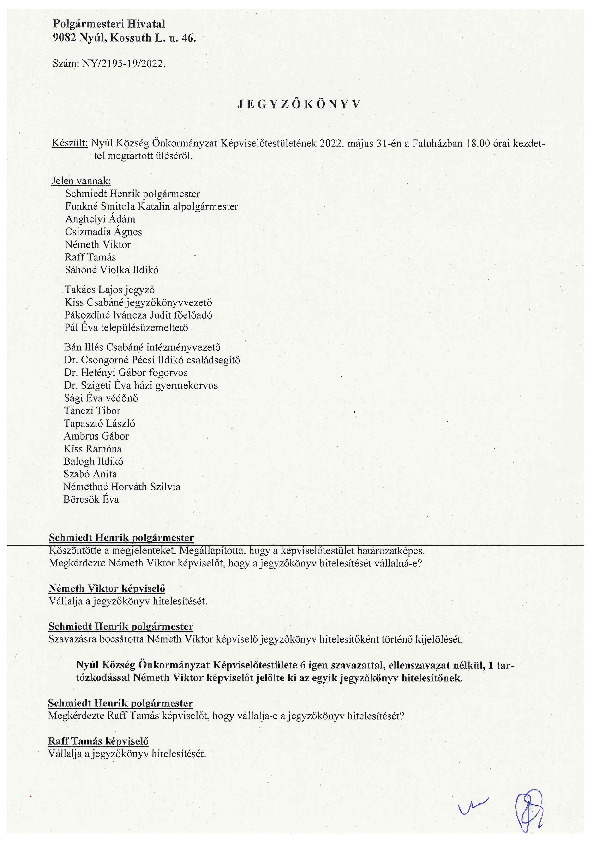 Testületi ülés - 2022.05.31. jegyzőkönyv
