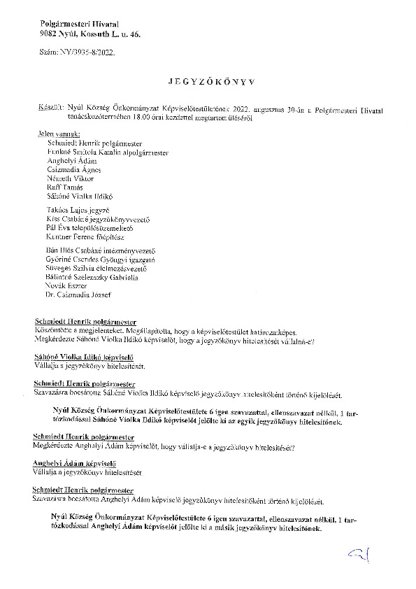 Testületi ülés - 2022.08.30. jegyzőkönyv