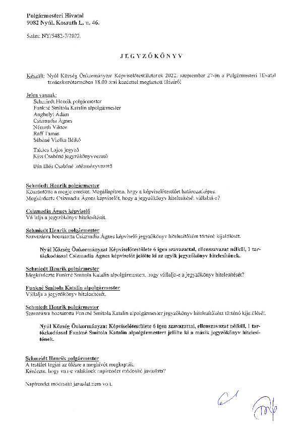 Testületi ülés - 2022.09.27. jegyzőkönyv