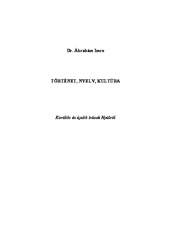 Dr. Ábrahám Imre: Történet, Nyelv, Kultúra