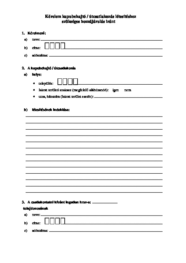 Kapubehajtó létesítéséhez kérelem