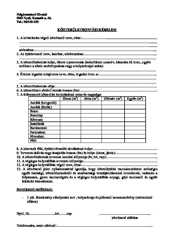 Közterületbontási kérelem