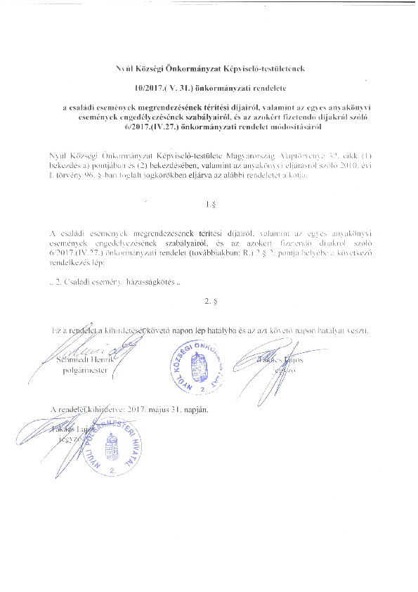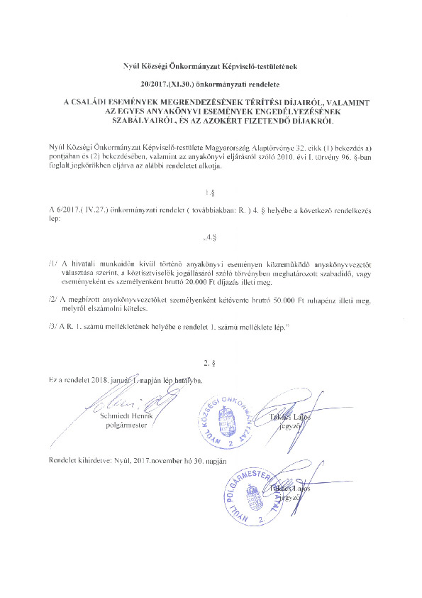 Családi események megrendezésének térítési díjairól szóló rendelet módosítása