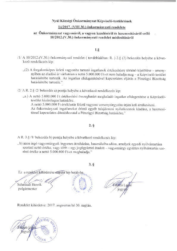 Önkormányzat vagyonáról a vagyon kezeléséről és hasznosításáról szóló rendelet módosítása