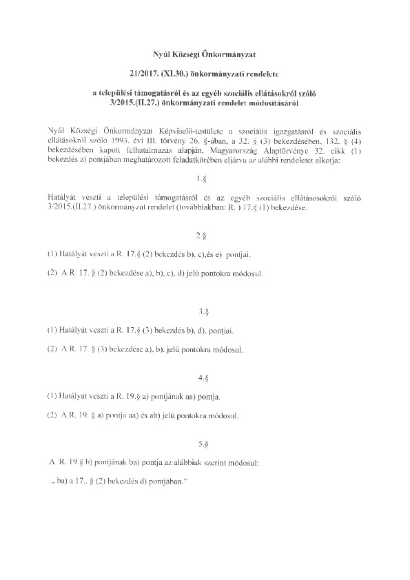 Települési támogatásról és szociális ellátásokról szóló rendelet módosítása