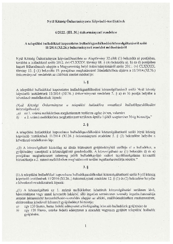 A települési hulladékkal kapcsolatos hulladékgazd. közszolgáltatásról szóló rendelet mód.