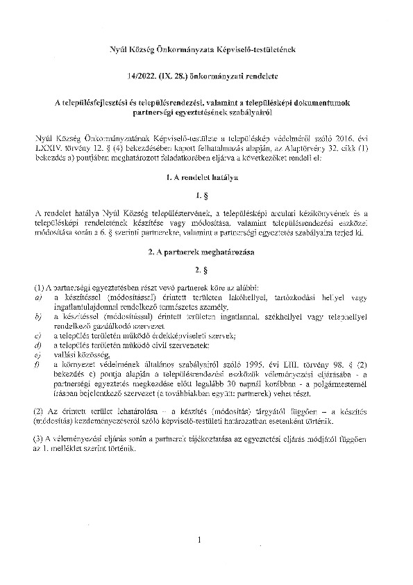 Településfejl. és településrend., településképi dok. partnerségi egyeztetésének szabályairól
