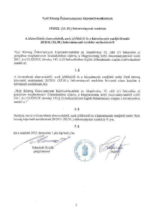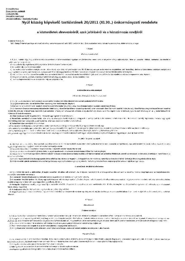 Közterületek elnevezéséről, azok jelöléséről és a házszámozás rendjéről szóló önk. rendelet