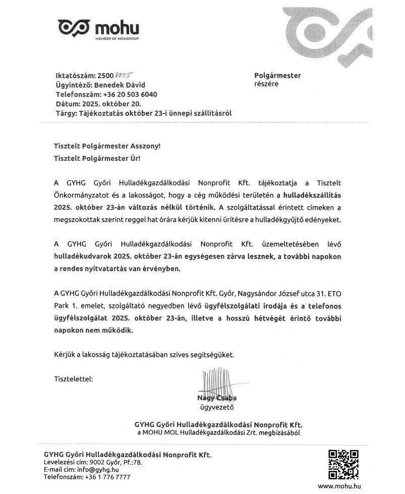 A hulladékgyűjtés október 23-án változtatás nélkül történik.